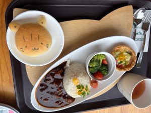 素敵なテーブル席で可愛いヤマネコパンのついたランチを食べました。