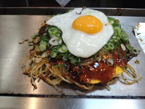 夜は広島に戻り、念願だった鉄板カウンター席でのお好み焼きを食べました。