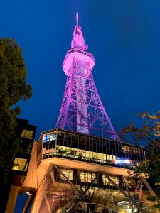 ちょうど桜の時期で「中部電力MIRAI TOWER」の塔体が桜色にライトアップしていました。