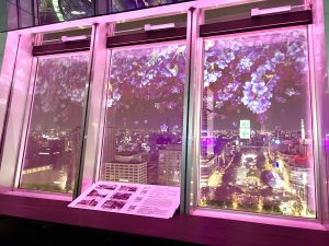 またタワー内では特別イベントとして、窓面全体を彩るプロジェクションマッピングショーが開催されていました。